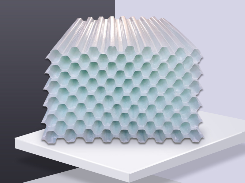 六角蜂窩填料有斜管和直管兩種方式。原料有聚丙烯、聚氯乙稀和乙丙共聚三種。