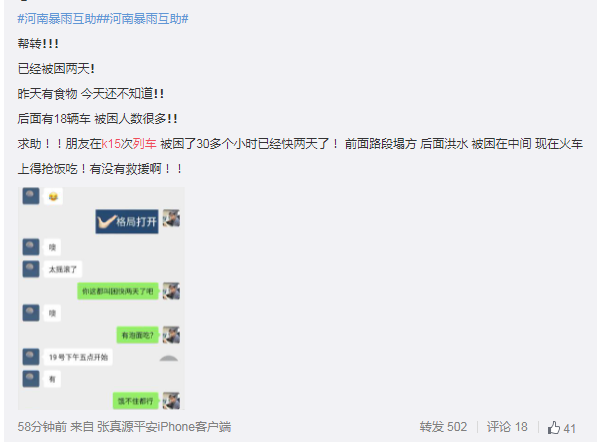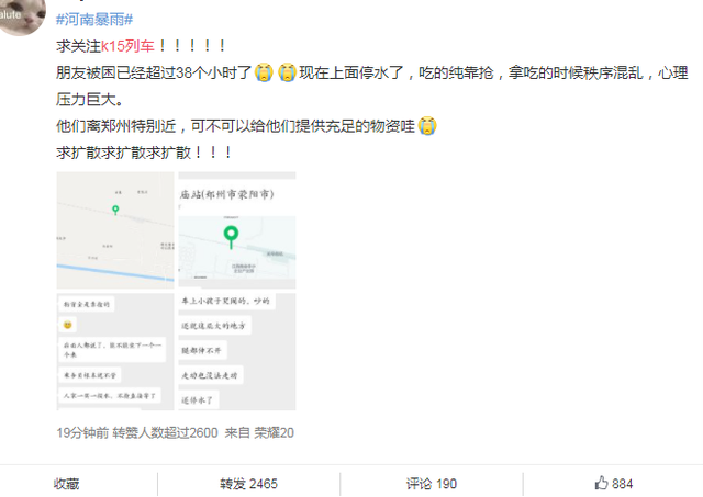 7月21日09時(shí),接通知,鄭州市防辦與K226次列車乘客楊女士取得電話聯(lián)系,據(jù)楊女士反映,K226次列車于7月19日16時(shí)30分許從鄭州站出發(fā)開往蘭州,列車在離開鄭州站后的第二個(gè)車站(鐵爐站)???,截至目前已經(jīng)??砍^40小時(shí),另據(jù)列車乘務(wù)員反映,本次列車乘員約735人左右,目前乘客情緒總體穩(wěn)定,車上21日已斷糧斷水,急需救援。