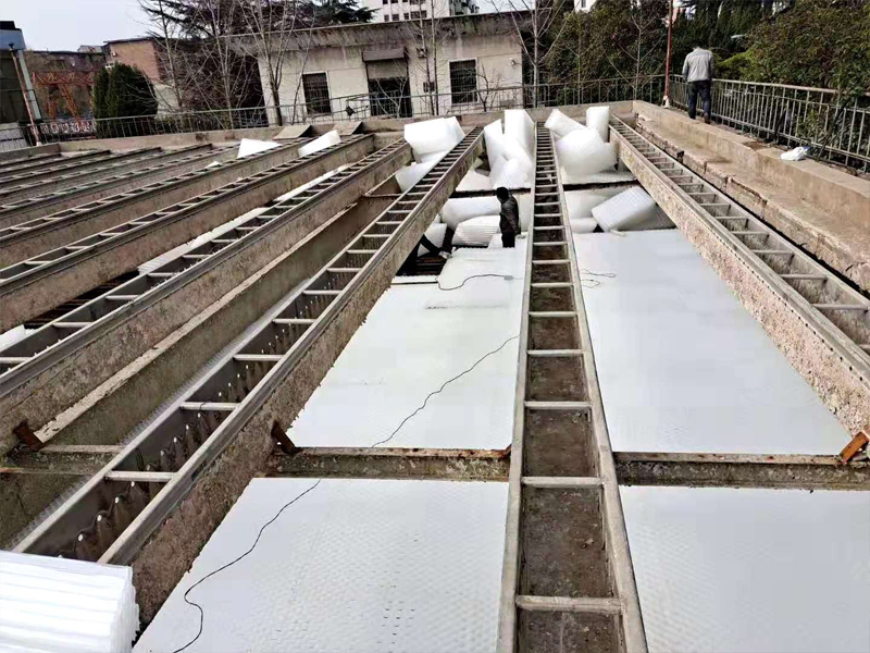 斜管式沉淀池填料在長(zhǎng)期使用后,如二沉池出現(xiàn)污泥上浮、污泥停留時(shí)間過(guò)長(zhǎng)、設(shè)備故障等,需對(duì)沉淀池填料內(nèi)壁進(jìn)行清洗,若內(nèi)壁堵塞嚴(yán)重,則需對(duì)其填料更換。