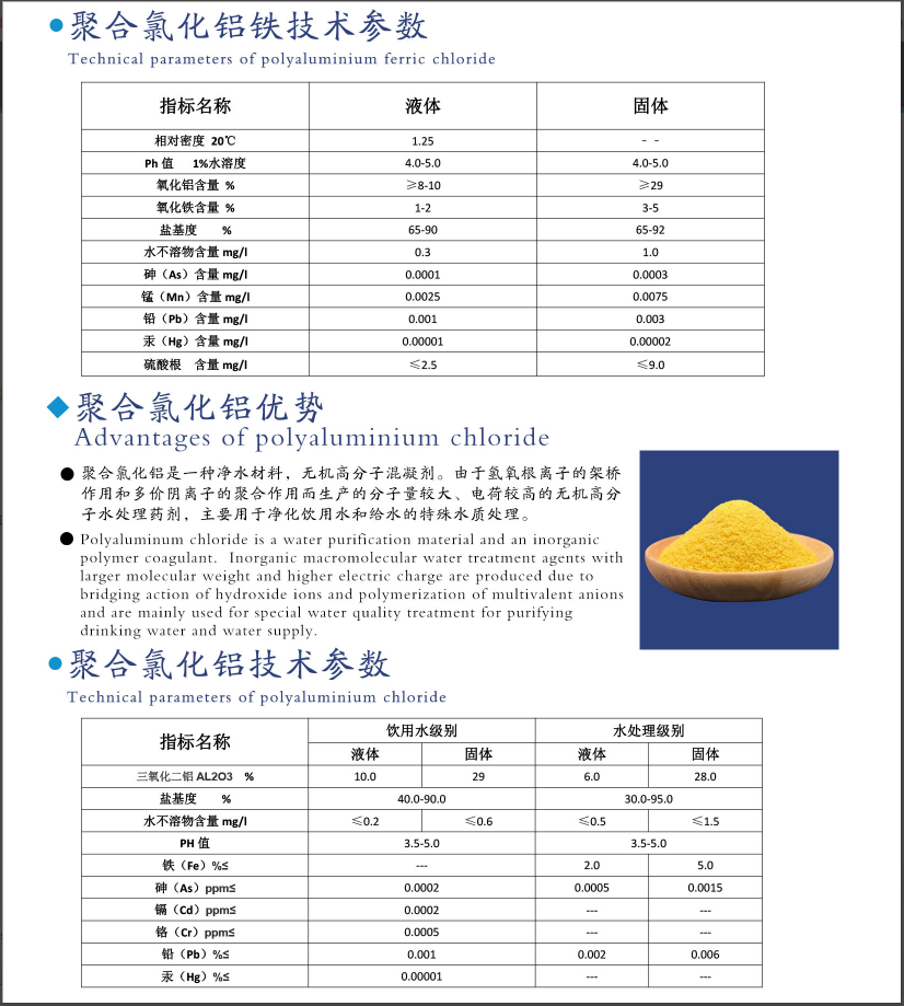 聚合氯化鋁(PAC)是一種無機物,一種新興凈水材料、無機高分子 混凝劑,簡稱聚鋁。對水中膠體和顆粒物具有高度電中和及橋聯(lián)作用,并可強力去除微有毒物及重金屬離子,性狀穩(wěn)定